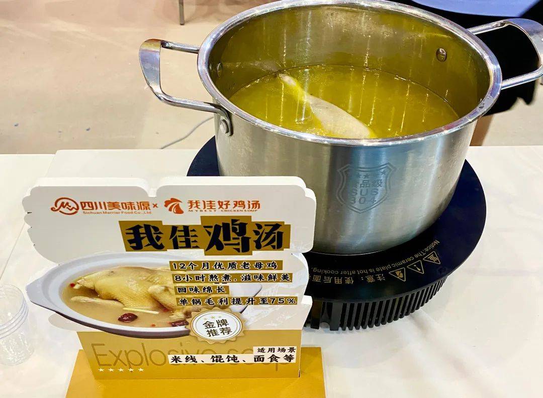 在主打8小时真熬煮的我佳鸡汤展台前,一位安徽本土面馆老板连喝三碗后赞道:“我家门店每天光熬汤就得花 6 小时,用这款汤底不仅省了 2 个人工,关键是鲜味一点没打折扣!”