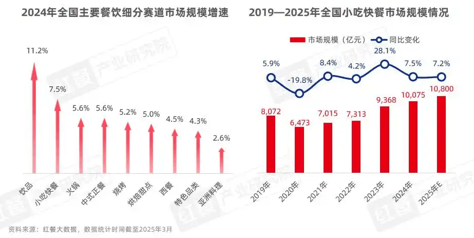 1.抗风险能力强:在人均消费普遍下降的背景下,小吃快餐凭借刚需属性逆市增长,2025 年市场规模预计达 1.08 万亿元,而鸡汤汤底的健康属性更能吸引高频复购。