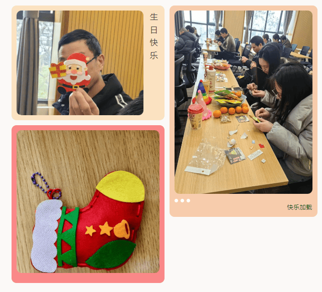 圣诞挂件制作区则氛围温馨,大家一起动手裁剪、粘贴,不时交流制作技巧,一个个精致可爱的圣诞挂件渐渐成型,欢声笑语中满是协作的快乐。