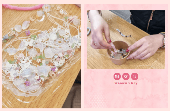 随即开启了一场充满治愈感的能量水晶 DIY 之旅。大家挑选心仪的水晶原石,搭配色彩和谐的串珠,用指尖的温度,将一颗颗蕴含能量的水晶,编织成独属于自己的幸运信物。