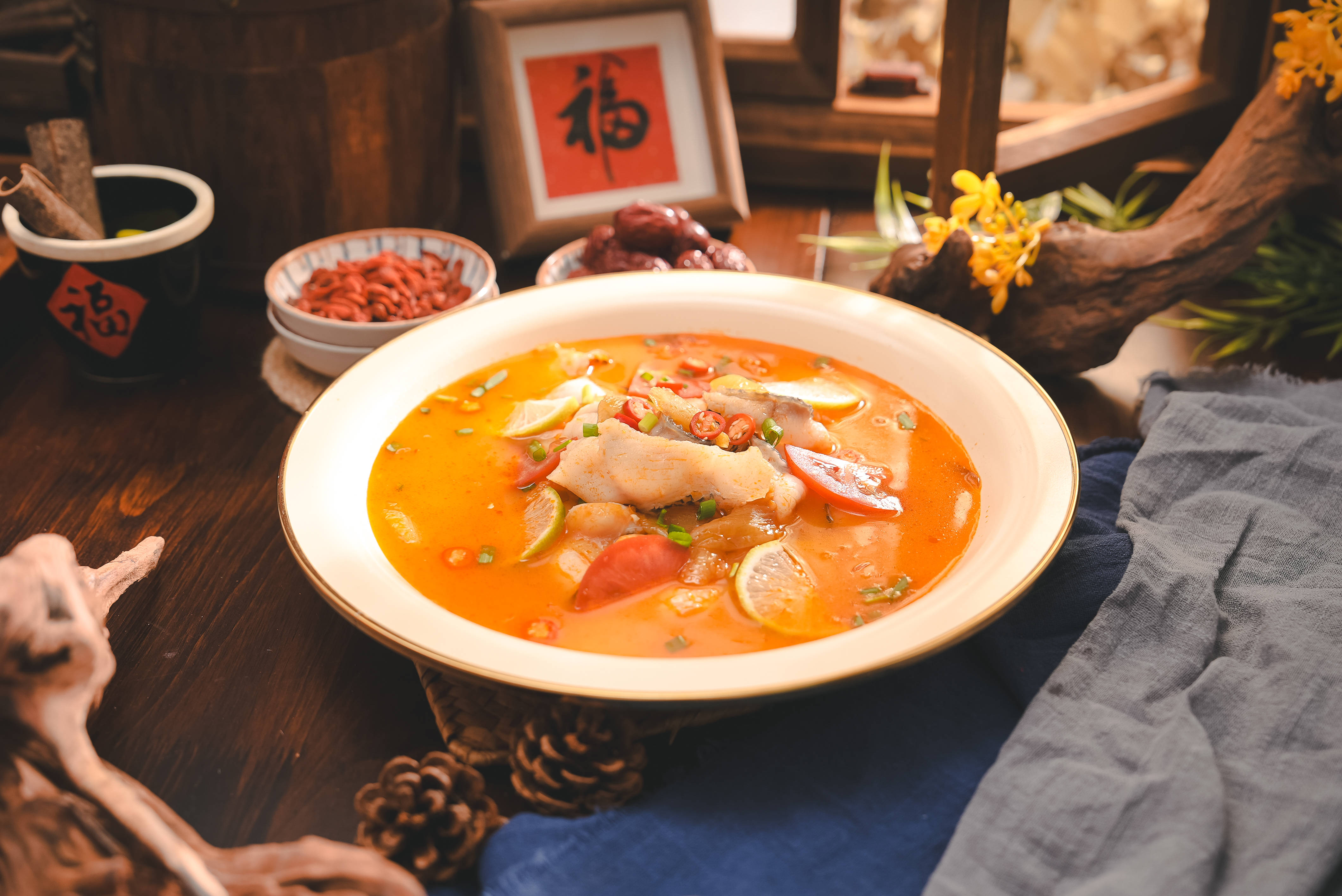 2. 番茄鱼锅:鲜切鱼肉邂逅黄金酸甜番茄汤,酸辣开胃不油腻!免杀鱼免熬汤,下锅即煮,冬季吃鱼新姿势,让顾客一口沦陷!