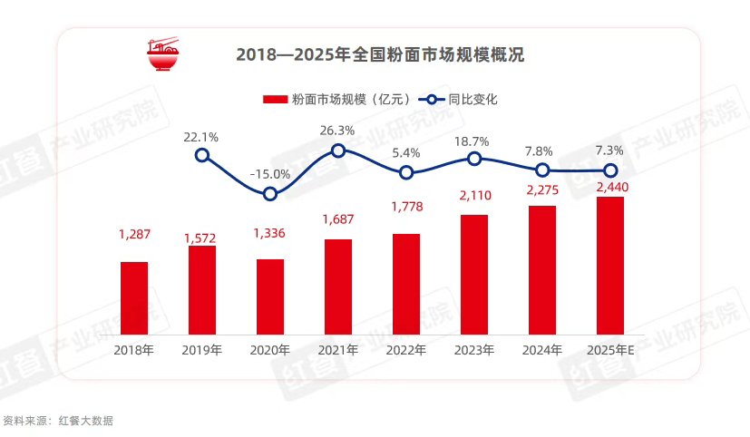 所有餐饮老板都该清醒了:大环境再难,刚需赛道也藏着真金。红餐大数据显示,2024年全国粉面品类市场规模已达2275亿元,2025年门店数突破101万家。
